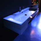 Модель достаточно габаритная, поэтом её лучше использовать для просторных ванных комнат. Раковина исполнена в современном стиле, который вам непременно понравится. Она станет украшением ванной комнаты, кроме того – раковина отлично сочетается с другой сантехникой.