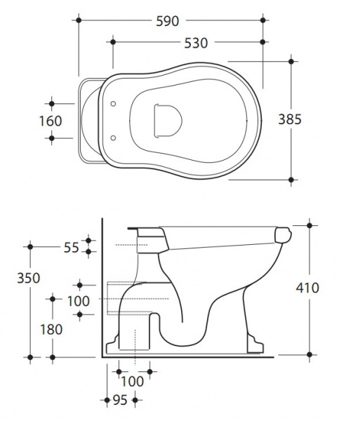 Унитаз приставной (чаша) Kerasan Retro, слив в пол, черный глянец - Характеристики