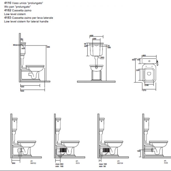 Унитаз напольный пристенный удлиненный "Prolungato". Можно комбинировать с высоким и средним бачком. Цвет белый.