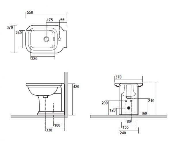 Биде напольное Kerasan Waldorf 4121 - Характеристики
