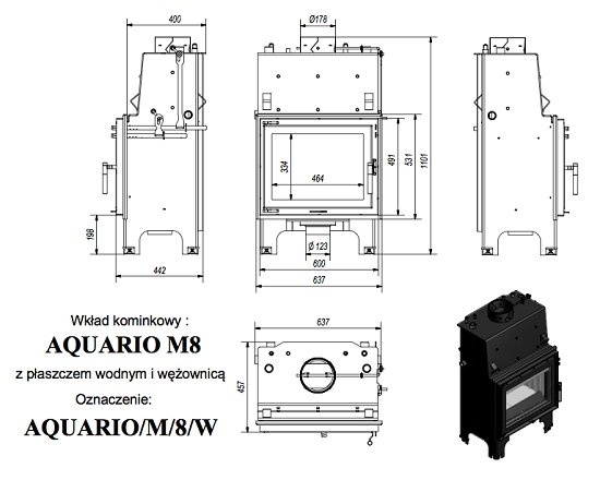 Дровяная топка Kratki AQUARIO/M/8/PW/W - Характеристики