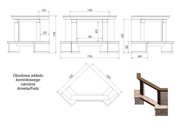 Каминная облицовка Kratki Etna угловая для Amelia/Felix - Описание