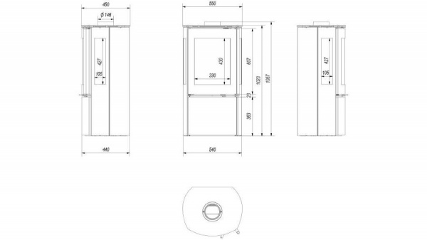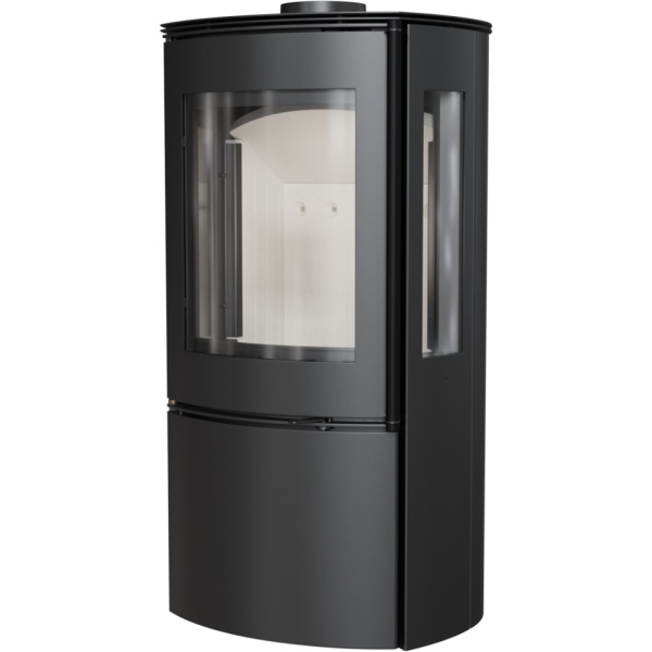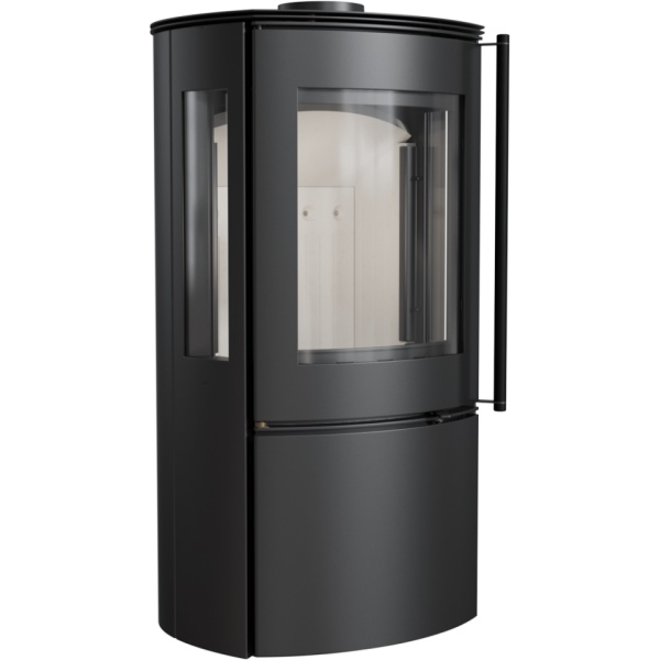 Falcon View - автономная стальная печь с простыми формами и интересным закругленным корпусом, который позволяет видеть огонь с разных сторон. Также в этой модели дополнительные боковые стекла.