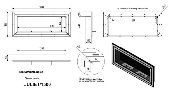 Биокамин Kratki Juliet/1500-Pro (1500x650) - Характеристики