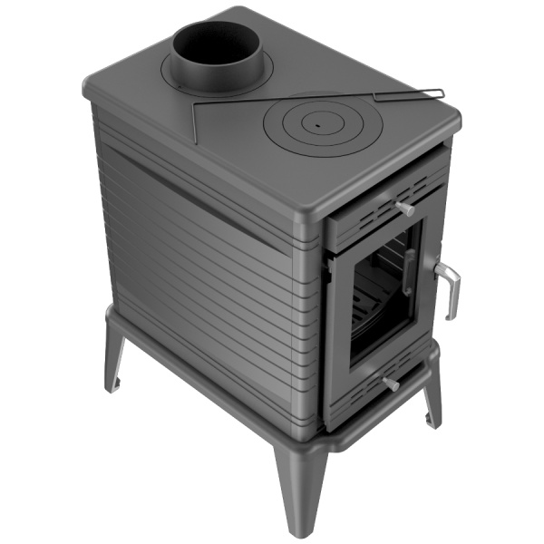 Чугунная печь выделяется из модельного ряда высокой мощностью, наличием варочной поверхности, компактными и строгими формами. Эта печь также оснащена турбиной принудительной конвекции нагретого воздуха от печи в помещение. Наличие турбины в несколько раз повышает скорость прогрева помещения. Горячий воздух не «застаивается» около отопительного прибора, а сразу начинает поступать в непрогретые участки, благодаря постоянному воздушному потоку. Турбина потребляет небольшое количество электроэнергии, а эффективность работы печи в момент первоначального прогрева помещения повышается многократно.