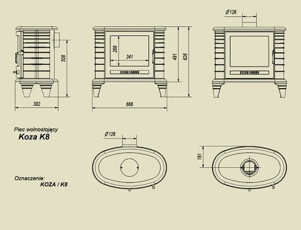 Печь-камин Kratki Koza/K8/турбина - Описание
