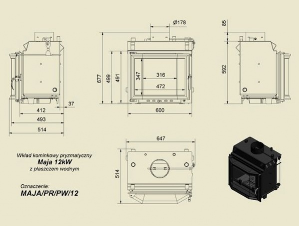 Дровяная топка Kratki Maja/PR/PW/12/W - Характеристики