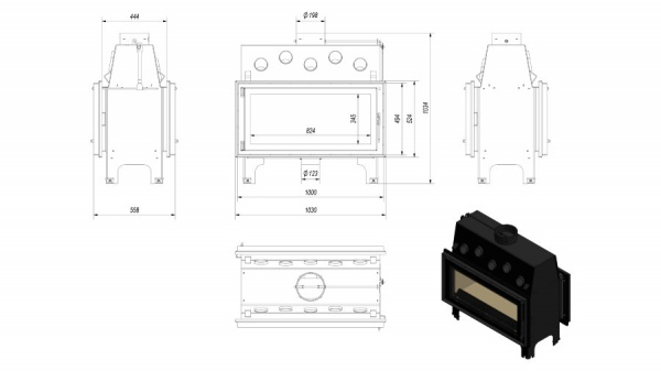 Опции: | встроенный шибер, встроенные ножки, система чистое стекло, подача воздуха извне, более 1 дверцы в топке |