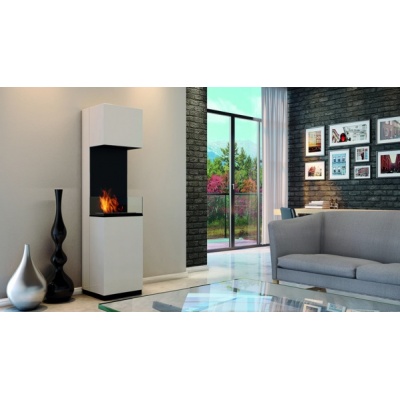 Биокамин SIERRA- напольный биокамин SIERRA имеет современный дизайн и интересную форму. Как и все напольные биокамины устанавливается в любом месте и идеально подходит как для больших пространств жилых, офисных, так и для квартир и террас. Возможна комплектация декоративным стеклом(опция - заказывается отдельно). Портал биокамина выполнен из МДФ и окрашен в белый цвет. Внутренний корпус из нержавеющей стали с порошковым покрытием черного цвета. Контейнер для биотоплива емкостью 1,2 литра. Регулировка интенсивности пламени выполняется, как правило, крышкой горелки. Не требует дополнительного подключения дымохода. Вес 51 кг.