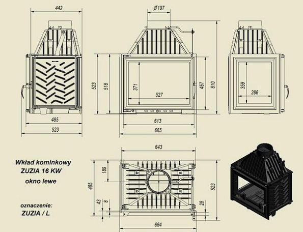 Топка Kratki Zuzia/L (стекло слева) - Характеристики