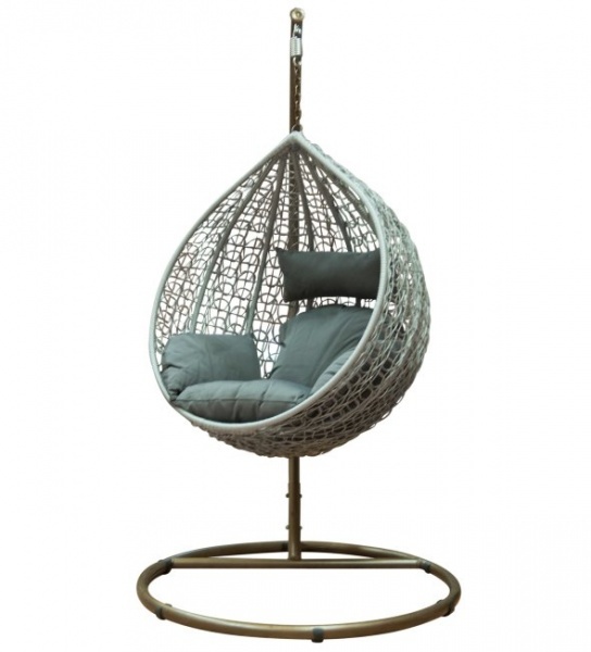 Кресло-качели на стальной штанге с плетеной корзиной из искусственного ротанга. В корзине удобные подушки из влагостойкой ткани.