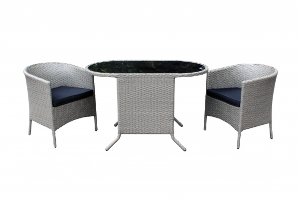 Комплект мебели из 2х стульев и 1 кофейного столика со стеклянной столешницей.