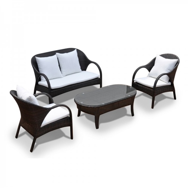 Мебель для отдыха в колониальном стиле из искусственного ротанга ручного плетения. Журнальный столик покрыт закаленным стеклом. Подушки дивана и кресел выполнены из влагостойкой ткани. В комплект входит: | диван двухместный, кресла - 2шт, журнальный столик, 4 подушки 60*60см |