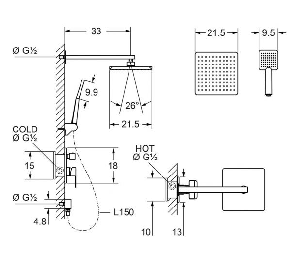 Встраиваемая душевая система Laguraty 2158 - Характеристики