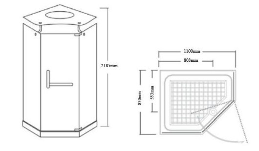 LanMeng LM-857 - это душевая кабина с распашной дверью, оборудованная ручным и верхним (тропическим) душем, с травмобезопасными прозрачными стеклами 8 мм, в комплекте с низким поддоном 15 см и сифоном.