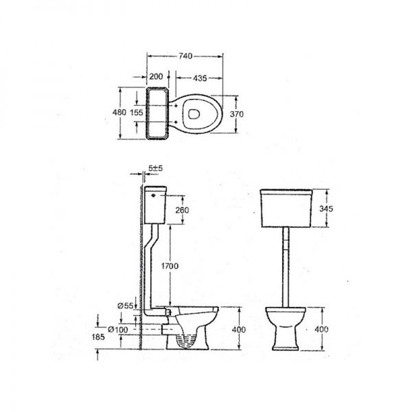 Унитаз напольный с бачком на высокой трубе Magliezza Retro 7010 BR (белое сиденье) - Обзоры