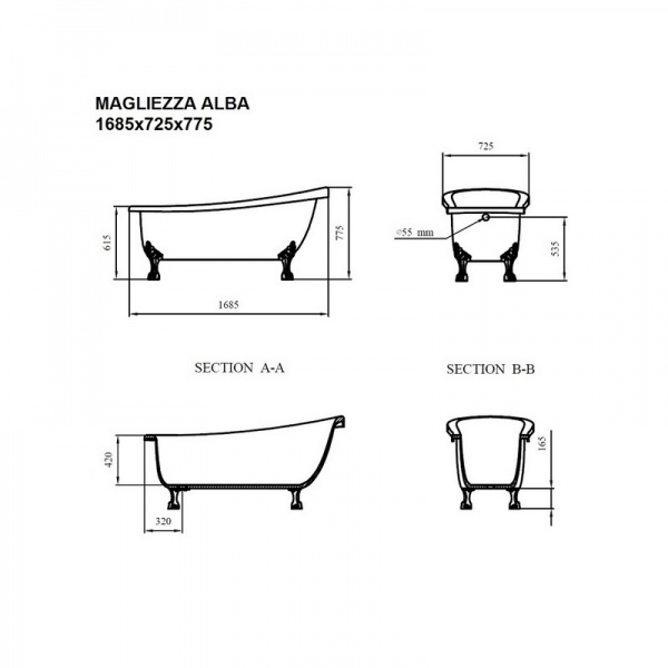 Овальная акриловая ванна Magliezza ALBA CR 1685 - Характеристики