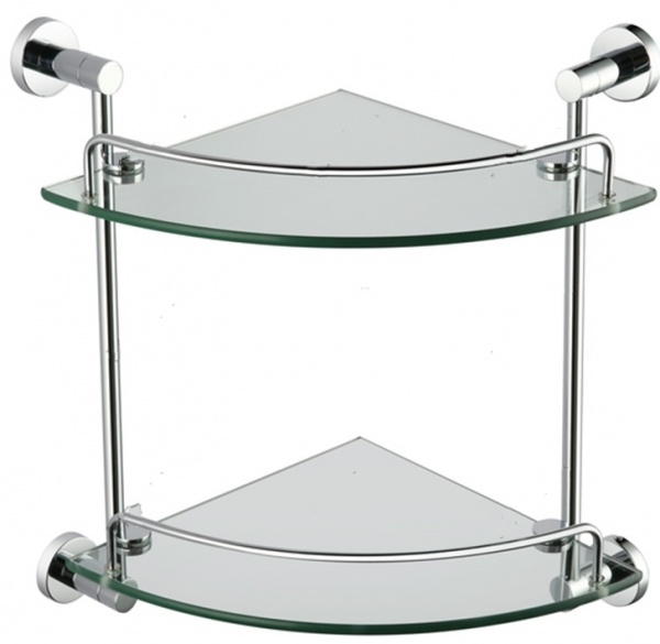 Полка стеклянная двойная MELANA латунь хром MLN-SY3004 в ванную комнату выполнена в лаконичном дизайне, который будет органично смотреться в интерьере ванной в современном стиле.