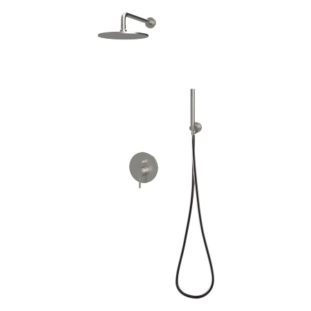 В комплект Y SYS Y16 NI входят скрытый смеситель для ванны, дождевой душ, ручка для душа, шланг для душа, а также угловое латунное соединение, с захватом на ручке для душа. Лейка верхнего душа выложена внутри резиновым покрытием, которое предотвращает накопление воды внутри лейки и защищает форсунки от механических повреждений, особенно во время чистки.
