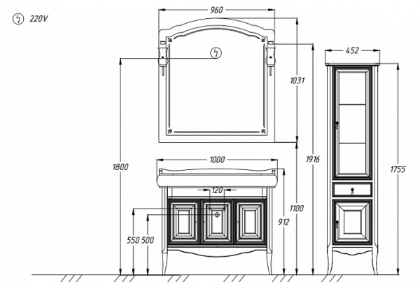 Набор мебели Opadiris Лоренцо 100 белый матовый с бежевой патиной - Характеристики