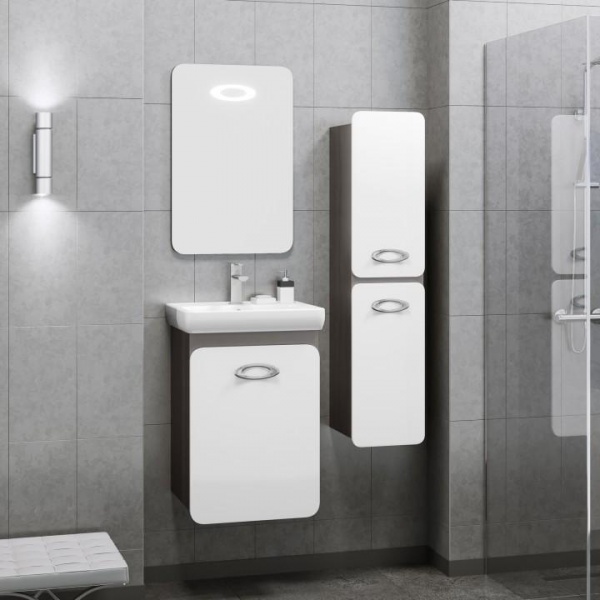 Данный набор сочетает в себе стиль и традиционное высокое качество. В комплект входит зеркало с подсветкой и выключателем, подвесная тумба и керамическая раковина – все, что необходимо для ежедневного комфорта во время гигиенических процедур и ухода за своей внешностью.