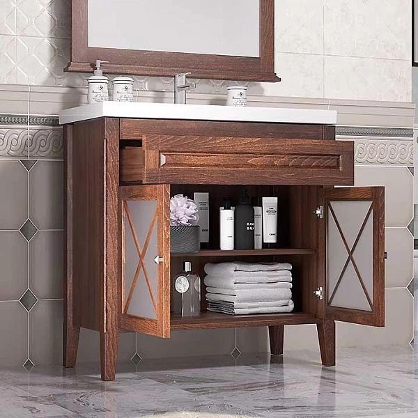 Коллекция мебели для ванной комнаты "Палермо" выполнена в традиционном американском стиле. Коллекцию отличают простые линии и совершенный дизайн. Фасадные части мебели выполнены из массива бука. Мебель оснащена глубокой керамической раковиной и механизмом плавного закрывания Hettich (Германия).