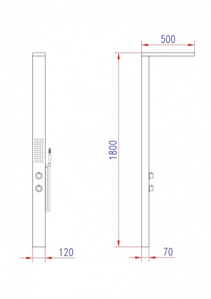 Пристенная душевая панель OLS-S7009 из нержавеющей стали.