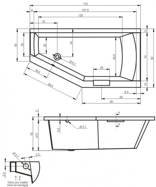 | Особенности: | ванны длина 170 см, ванны белые, ванны левые, ванны 170х90 |
