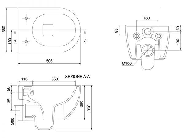 Унитаз безободковый с сиденьем Scarabeo Moon 5520/CL/5530/B - Характеристики