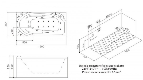Особенности: | ванны длина 160 см, ванны гидромассажные |