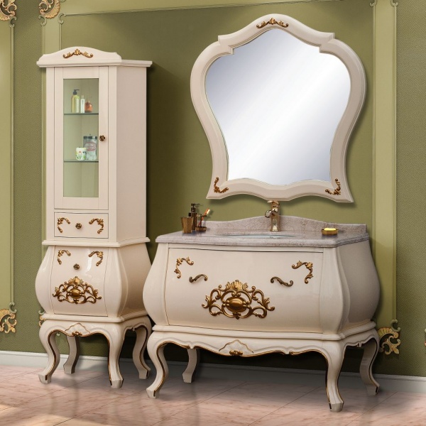В ассортименте представлены роскошные коллекции гарнитуров для ванных комнат, в которые входят тумбы, столешницы с раковинами, шкафчики и зеркала.