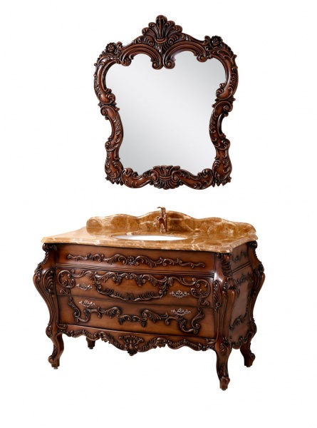 В ассортименте представлены роскошные коллекции гарнитуров для ванных комнат, в которые входят тумбы, столешницы с раковинами, шкафчики и зеркала.