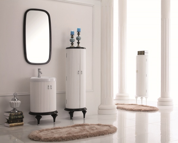 В ассортименте представлены роскошные коллекции гарнитуров для ванных комнат, в которые входят тумбы, столешницы с раковинами, шкафчики и зеркала.