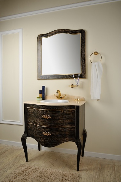Тумба с раковиной Timo Ellen 80 H-V черная с патиной золото - Описание