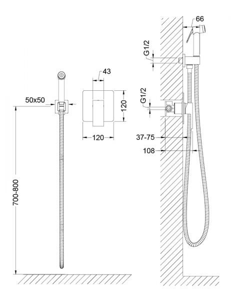 Смеситель скрытого монтажа Selene 2089/17SM с гигиеническим душем.