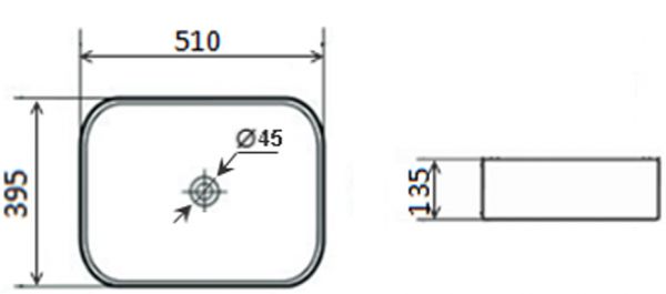 Раковина накладная Soli TK-305 MВ прямоугольной формы.