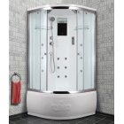 Решив купить эту душевую кабину, вы украсите свой дом великолепным эстетичным агрегатом. В ней предусмотрено шесть мощных форсунок для процедуры гидромассажа, функция тропического душа, красивая подсветка, вентиляция и радио.