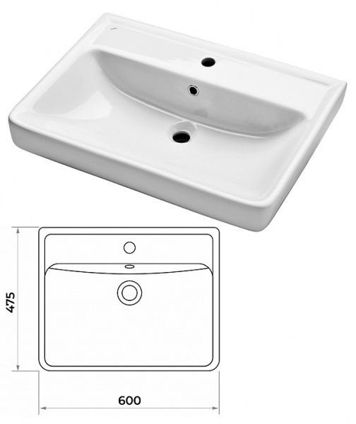 Размер раковины (ШхГ): | 60 см х 47.5 см Количество отверстий под смеситель: 1 |