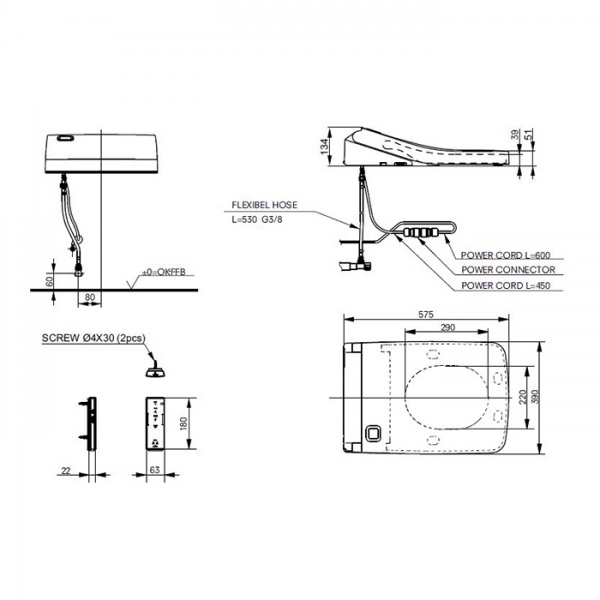 Омывание теплой водой, дезодоратор, фен, скрытое подключение воды и электричества.