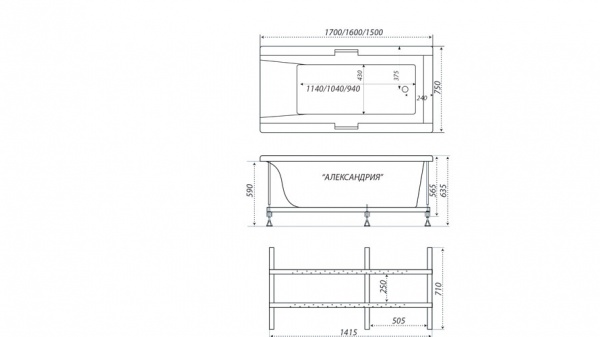 Прямоугольная ванна с гидромассажем Triton Александрия 160 - Характеристики