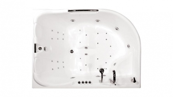 Она достаточно просторная, чтобы вместить двоих человек. Наличие форсунок для гидромассажа сделает водные процедуры приятными и полезными для здоровья. Прямоугольная форма эффектно смотрится в любом интерьерном решении, независимо от выбранной стилистики.