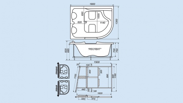 Гидромассажная ванна для двоих Triton Респект - Характеристики