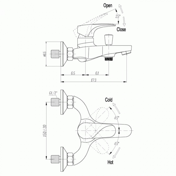 Смеситель для ванны Triton Римини 14704-D115 - Характеристики