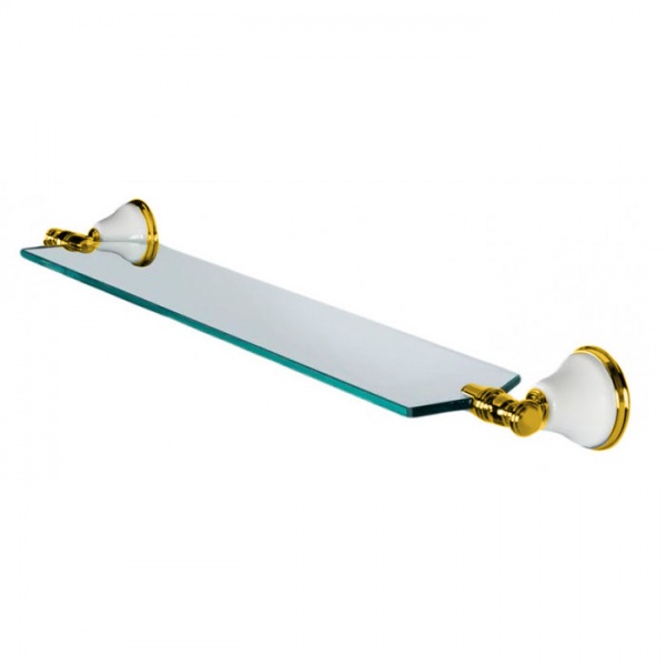 Стеклянная полка Harmony 018 с двумя держателями золотого цвета с керамическим декором.