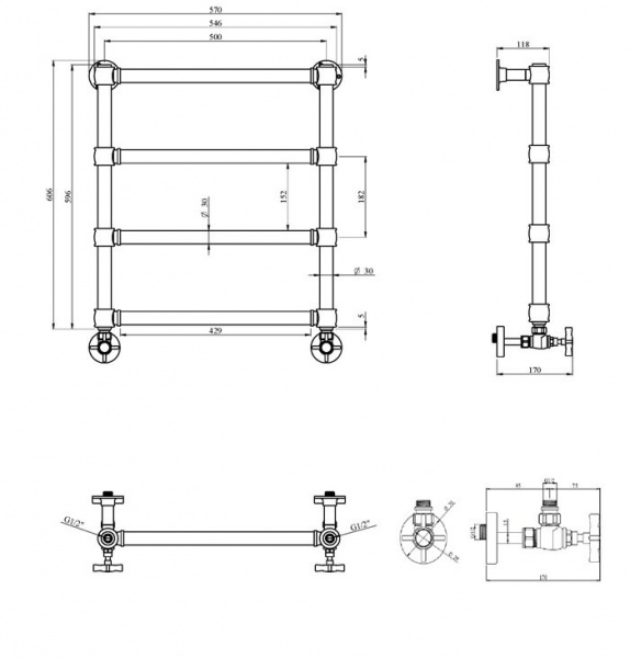 TW Комплект вентилей и эксцентриков (KV24110MTWoro) для монтажа водяного полотенцесушителя.