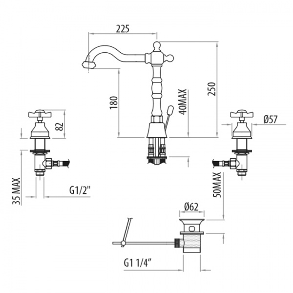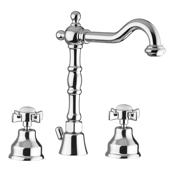 Смеситель для раковины London TW1709617C0cr цвета хром двухвентильного типа управления на 3 отверстия монтажа с донным клапаном.