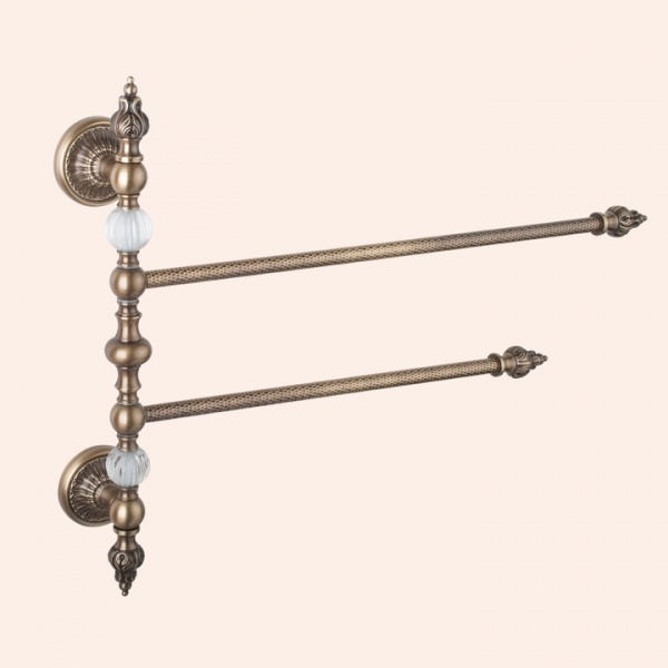 Полотенцедержатель двойной Murano 105 бронзового цвета с хрустальными вставками настенного типа монтажа.