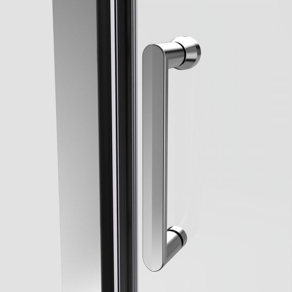 Душевой уголок размера 900/1000×800, направляющие из хрома, со стеклом 6 мм. Одна дверь, распашная, ширина входа - 570 мм. Установлены удобные ручки для открытия дверей. Увеличенный диапазон регулировок двери 140 мм.