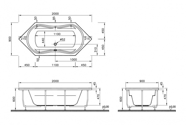 Асимметричная акриловая ванна Vitra Comfort 200x90 A.S.Easy Chrome - Характеристики