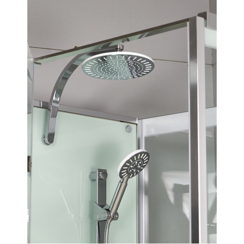 В процессе изготовления немецкие производители использовали закаленное, ударопрочное стекло толщиной 8 мм, надёжные комплектующие, петли из нержавеющей стали. Все элементы прошли контроль качества, соответствуют европейским нормам. Кабина оснащена ручным и верхним аэрируемым душем, штангой.